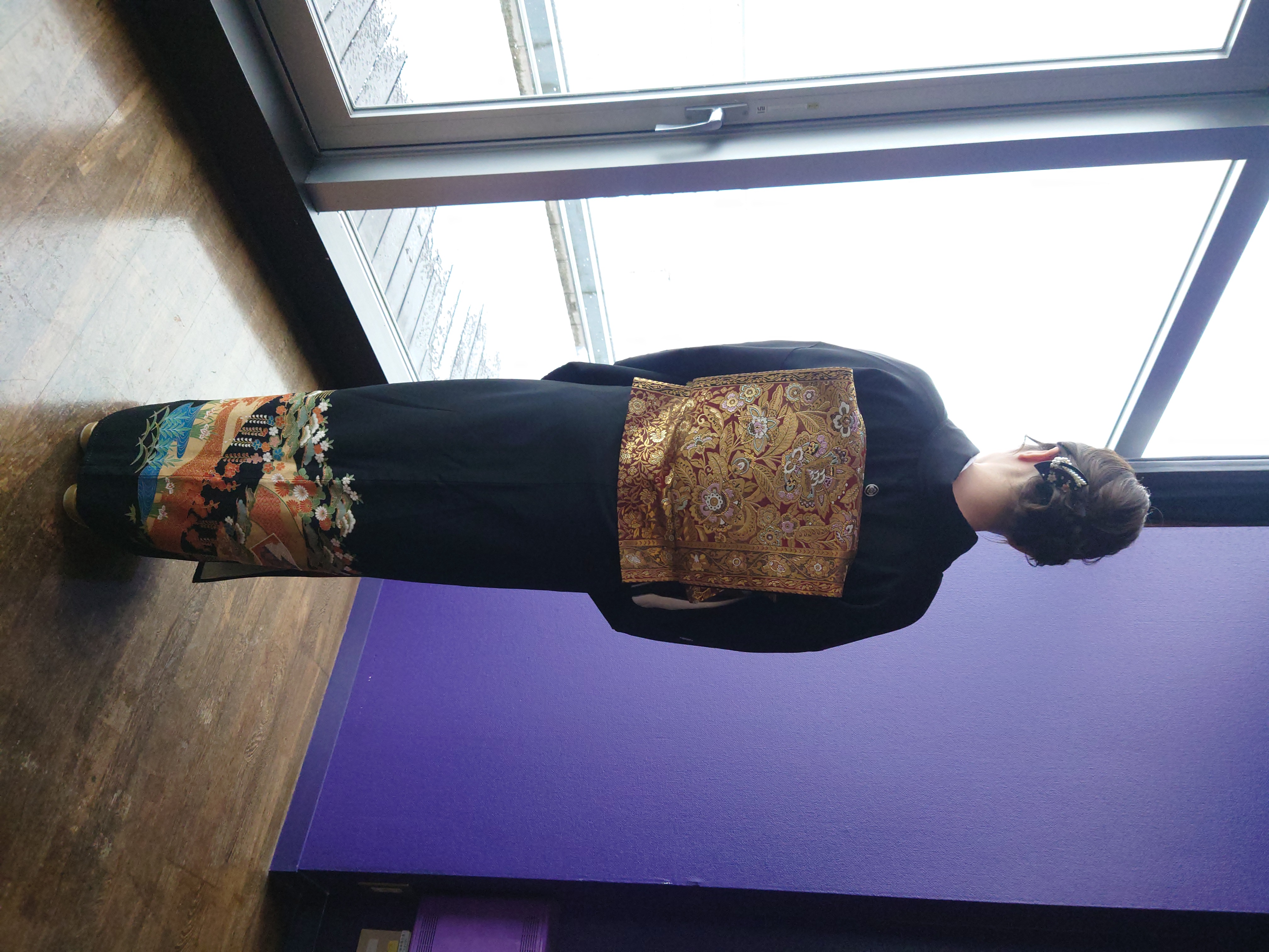 七宝、雪輪などの文様を描いた黒留袖でございます。