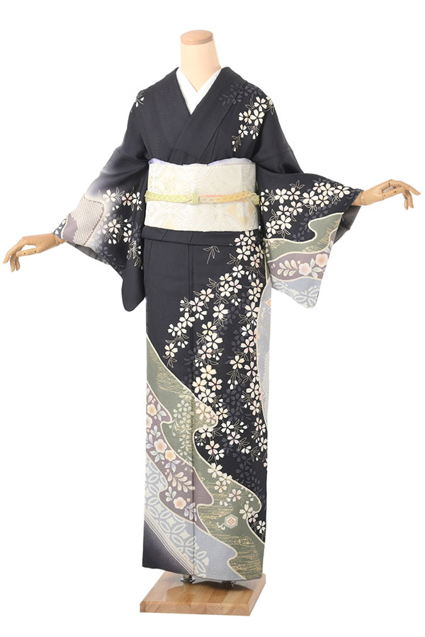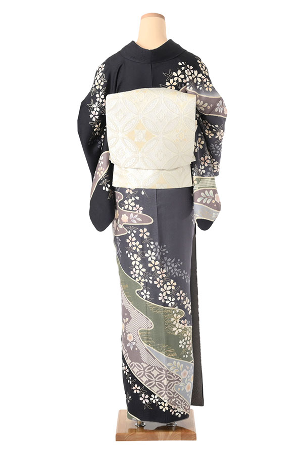 サイズ:MO 身長:MO(155cm ~ 165cm) 身丈:160cm 裄:63cm 袖丈:49.5cm ヒップ:97cm前後 前幅:24cm 後幅:30cm 帯:約4m40cm